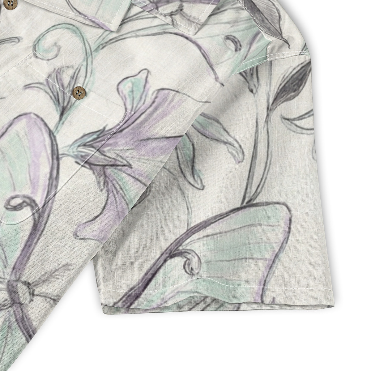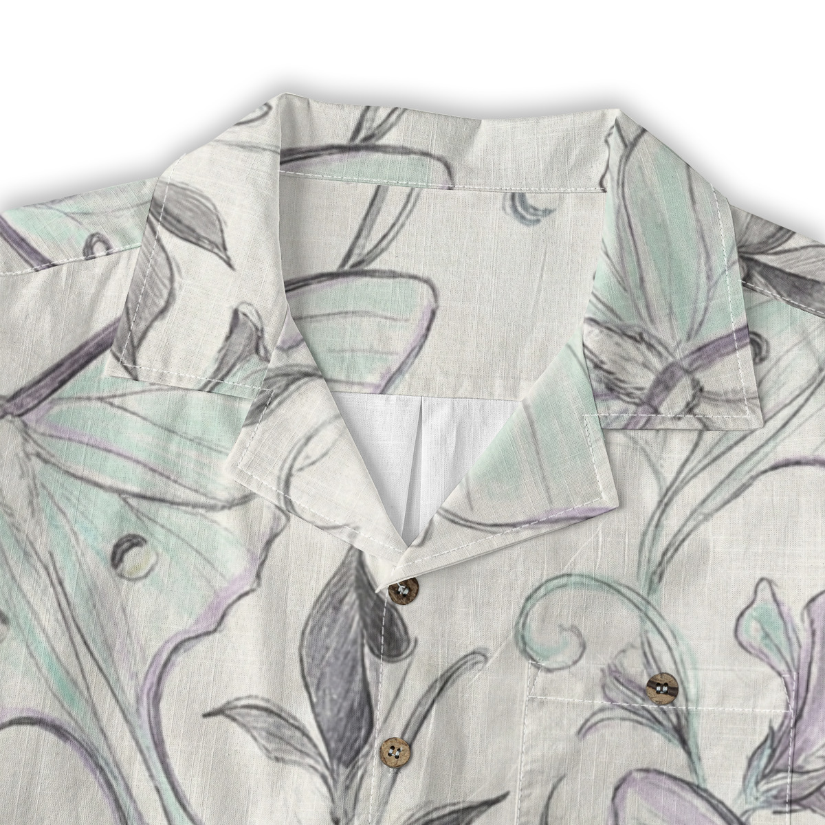 This Hawaiian shirt features graceful butterflies intertwined with flowing floral sketches in soft, pastel tones.
