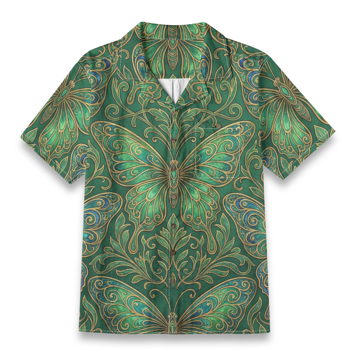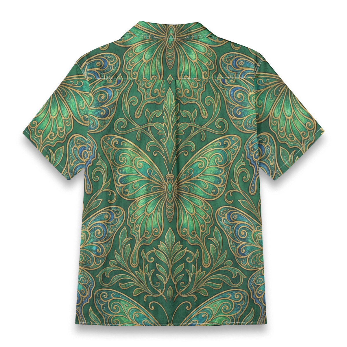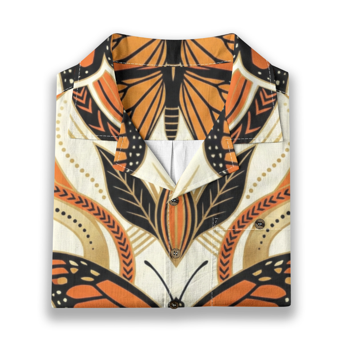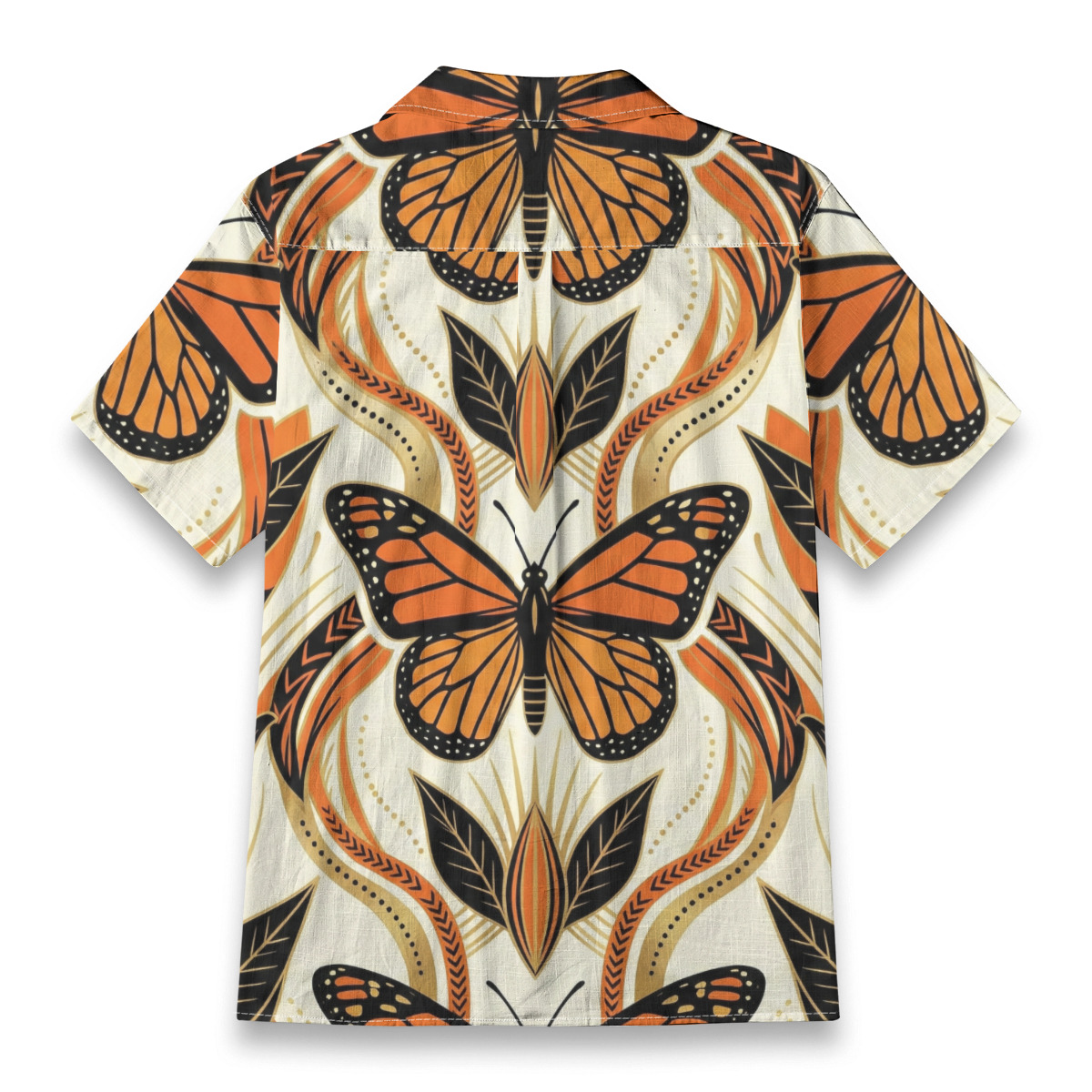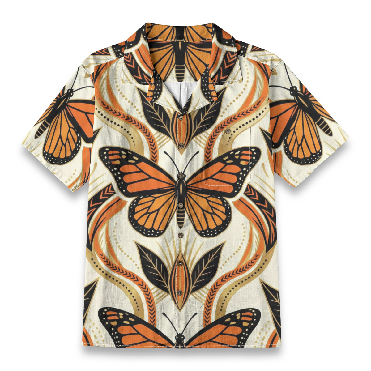 Stand out with artistic elegance in this monarch butterfly geometric art Hawaiian shirt.