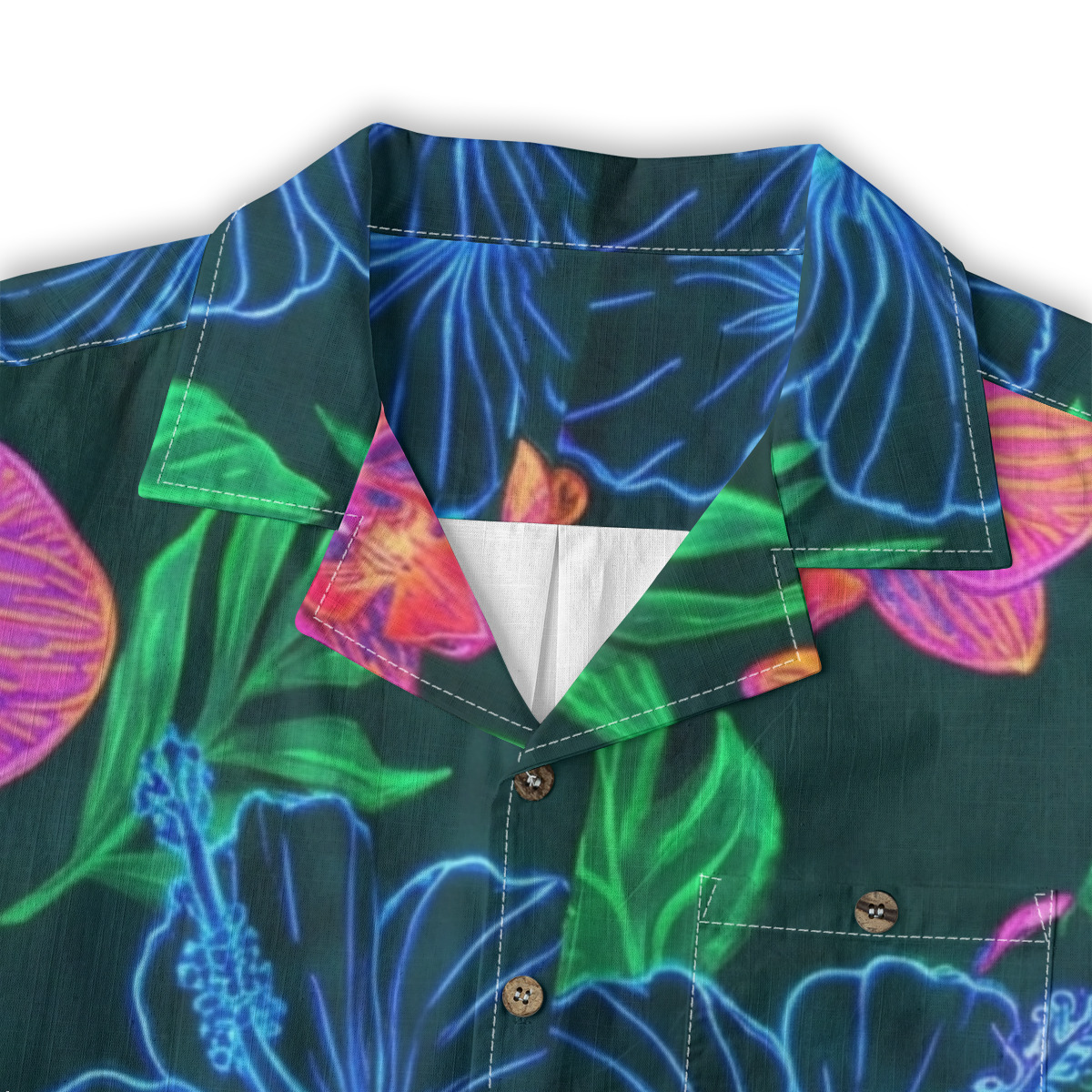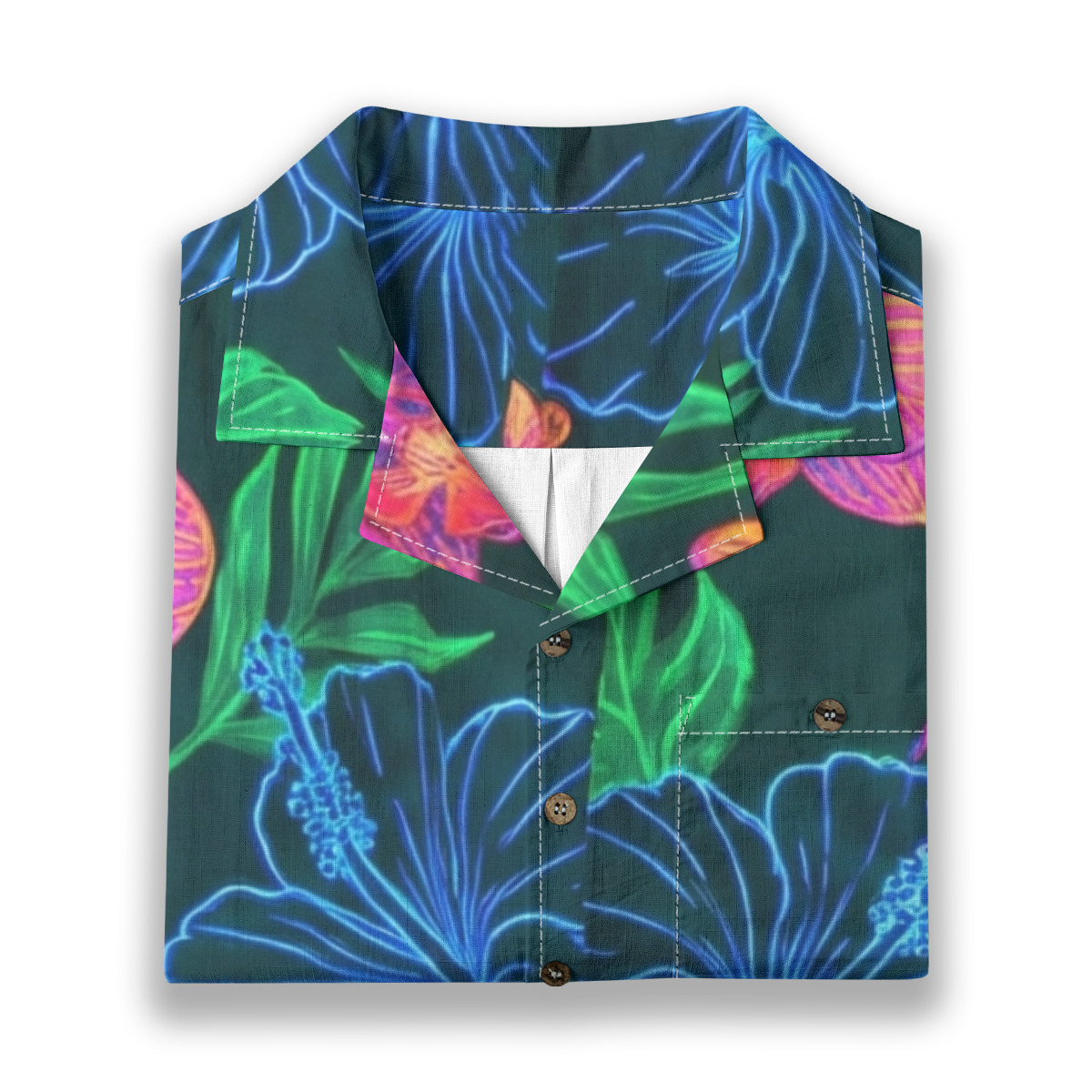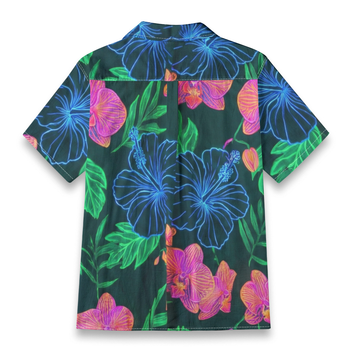 Make a bold statement with this neon tropical floral Hawaiian shirt designed for vibrant, modern style.