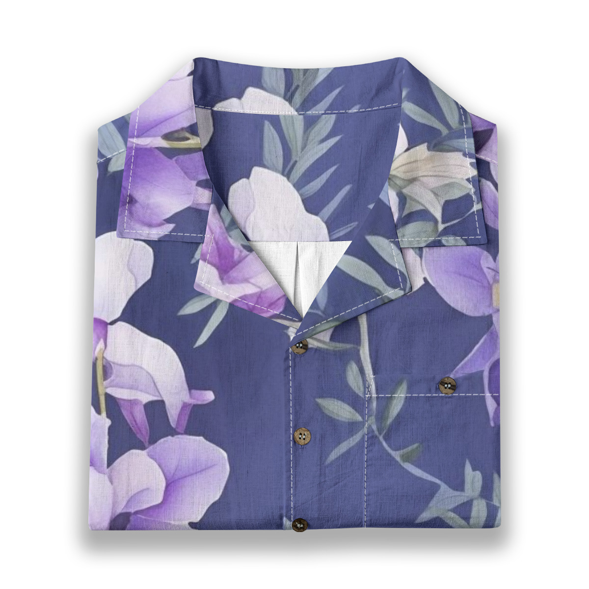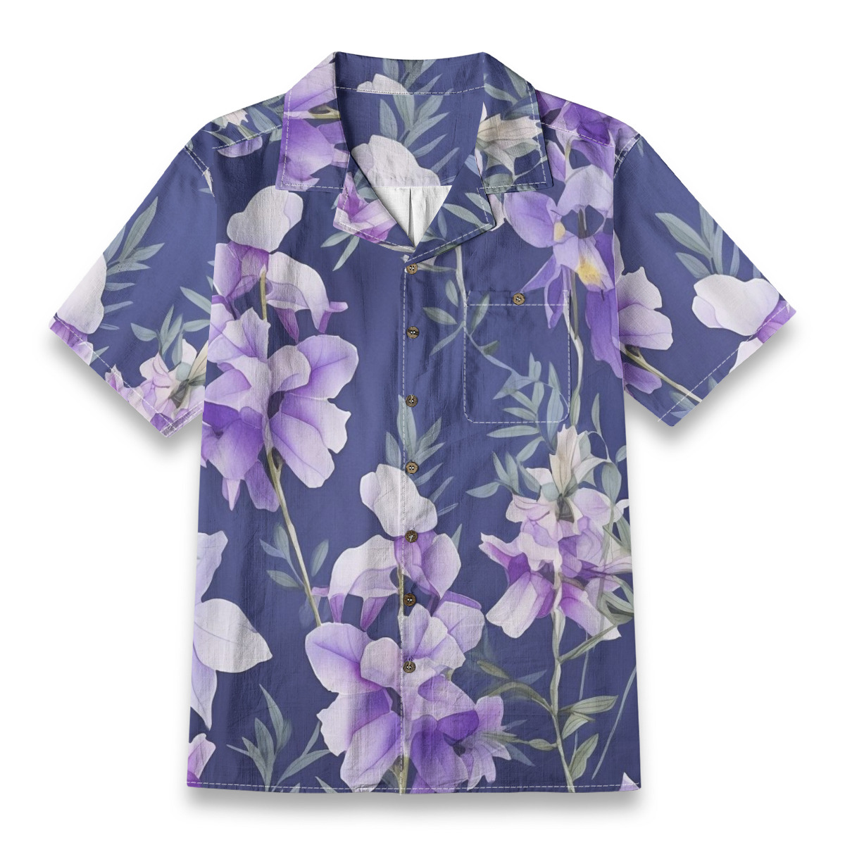 Bring refined tropical elegance to your wardrobe with this purple floral botanical Hawaiian shirt.