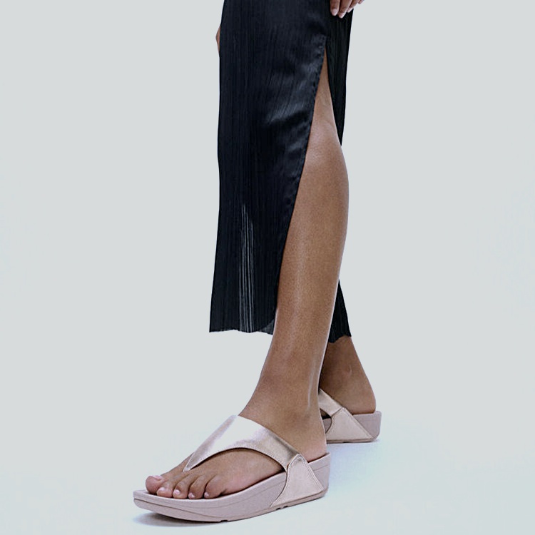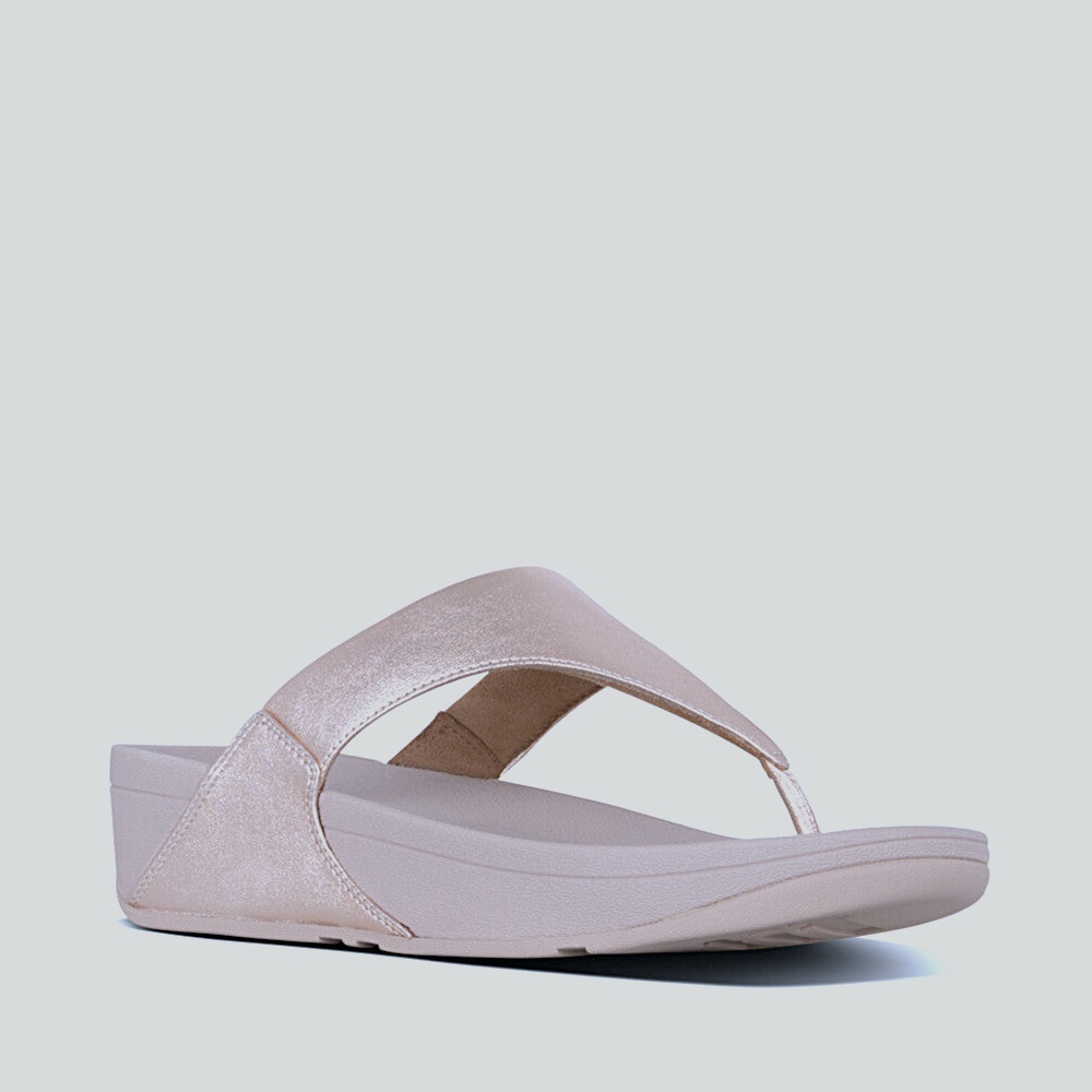 - Slim V-strap toe-post with sunlit shimmer